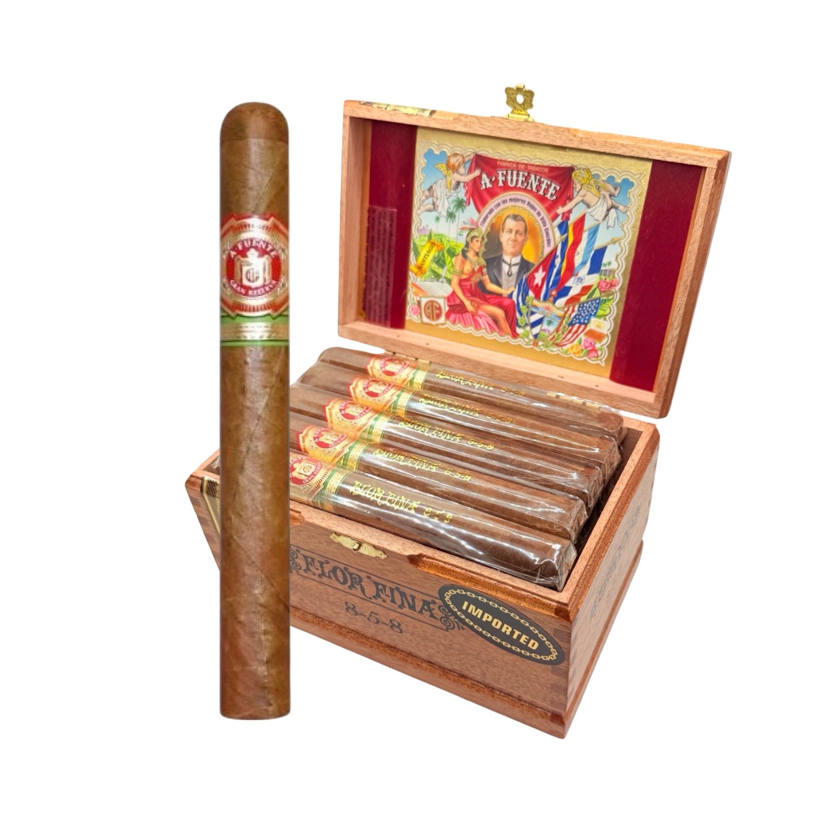 Arturo Fuente 8-5-8 Natural is a classic, mellow-to-medium bodied cigar renowned for its exceptional construction and consistent flavor profile. It features a harmonious blend of Dominican fillers and a natural African Cameroon wrapper. This cigar is widely available for purchase online.